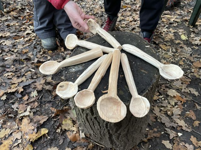 Acorn planting, spurtles, Jason Parr came to guide is spoon making. French dancing.