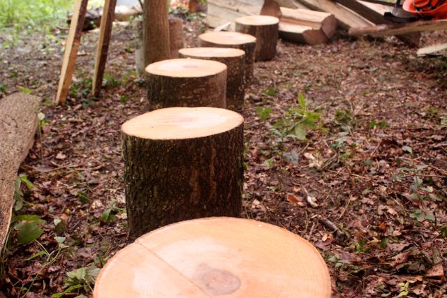 Meanwhile, Paul cut up the felled Ash into seats for us all to sit around the fire on. The Ash had unusual internal sporting.
