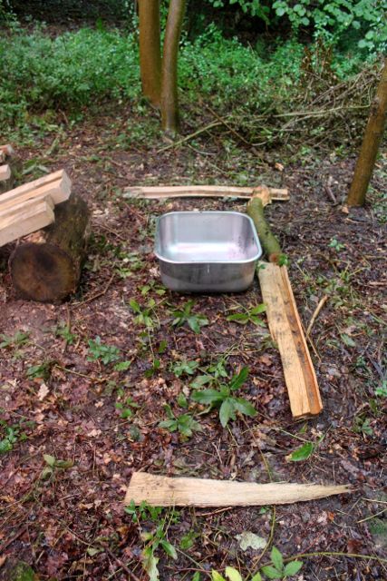 The pink parachute and paths to it, where confirmed, made higher and made safe today by a visit to the wood by Will Poyntz. Meanwhile wood is split, dens are made, deconstructed and constructed again.