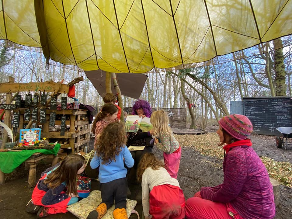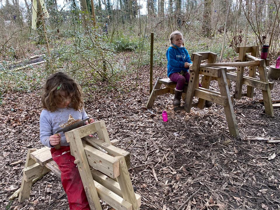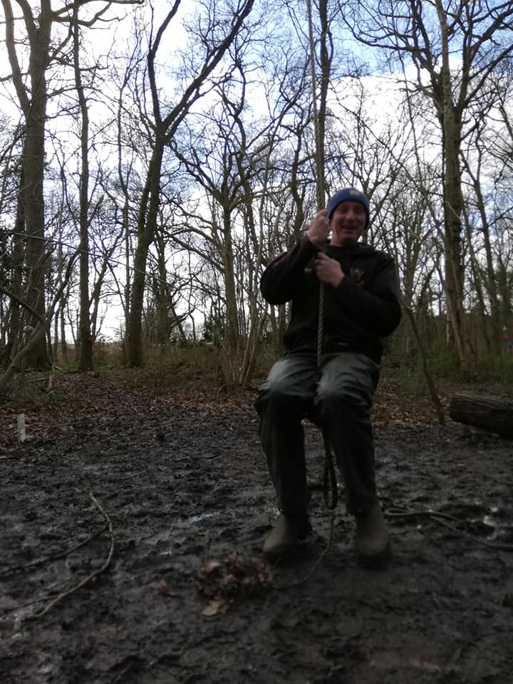 Spring was in the air…..Planning was devised, and written up on the shed blackboard. It was a day of elf cups, yoga slings, draw knives, story, relaxing, hiding, woodland caretaking and mud. It was so amazing to see everyone