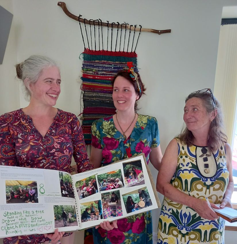 Every Monday from Monday 19th April 2021 to Mid summers day 2021, for 2 hours in the afternoon between 2 and 4pm, a group of up to 15 elders came to Kaliwoods to explore the magic of weaving. Weaving a natural tapestry, using words with the local poet Dean, using stories with the story teller Sue, and we even had a flying visit by Simone from Paris (France) to weave some art. As we wove a natural tapestry, we shared our stories of what this past year has been like, our ups and downs, our inside and outside, under the safe canopy of Kaliwoods.