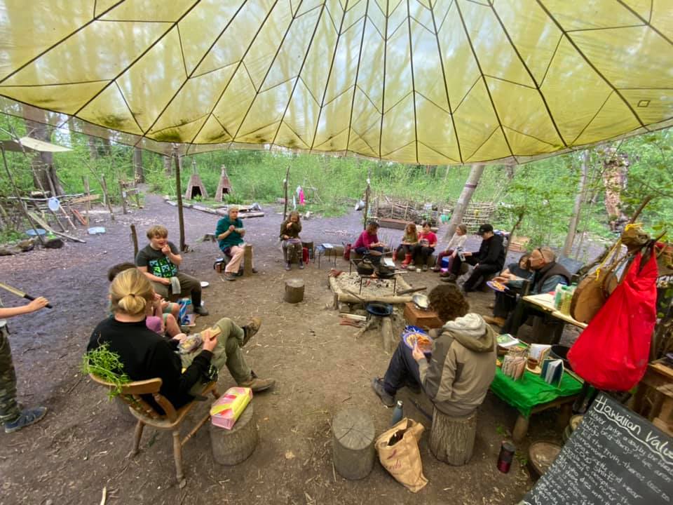 A beautiful day in the woods with our a Wednesday Tribe – bursting with the sounds of the wild, play and laughter. The day was full of magic, music, dancing and swirling with poi, respectful dueling, foraging and wild tea making, communal munching, consensus decision making and discussion on the values within play, wood chopping and crafting, bog oak and petrified wood were showed around the circle while the tribe listens to the woods and each other.