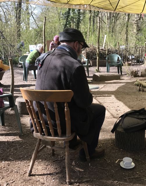 Cups of tea greeted our group on this fresh spring day. A lazy wind, a cold east wind, kept our coats on. Demonstration of how to use Tippy Taps, was followed by a general out pouring of darning.