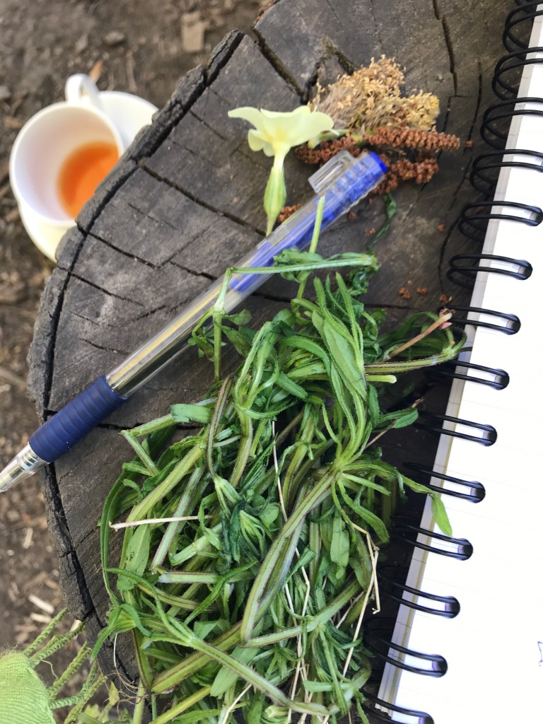 A brick, incongruous in a woodland and probably left over from the war, now softened with moss. Sticky Willie aka Cleavers, goosegrass, stickyweed, sticky bob, stickybud, stickyback, robin-run-the-hedge, sticky willy, sticky willow, stickyjack, stickeljack, grip grass, sticky grass, bobby buttons, whippysticks and velcro plant. Naomi described it as a kidney tonic: she puts into a jug of cold water over night, it cleans the water of impurities and as she drinks in the morning, and it cleans her kidneys.