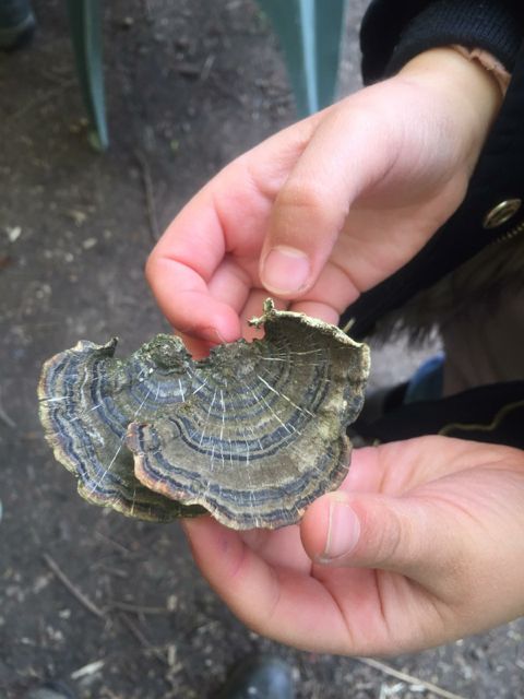 We had a quick Circle of Animals to introduce ourselves, with us Doormouse, Admiral butterfly, Horse, Dolphin, ….. before we went into the woods with a stranger to find something to bring back. A red spot stick, a black spot stick, a Knights armour, a turkey tail a slab or slice of wood that could be turned into so many things.