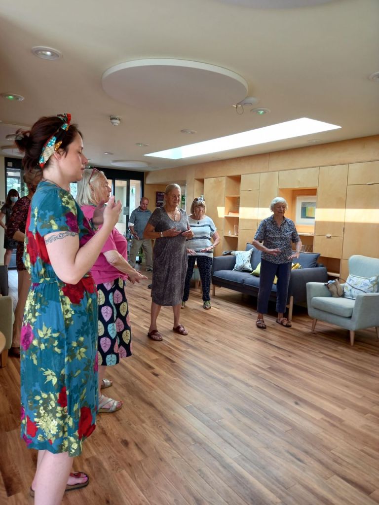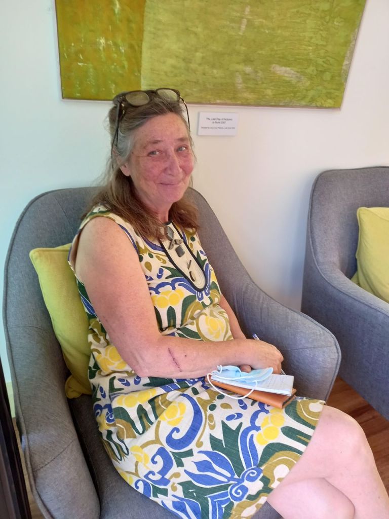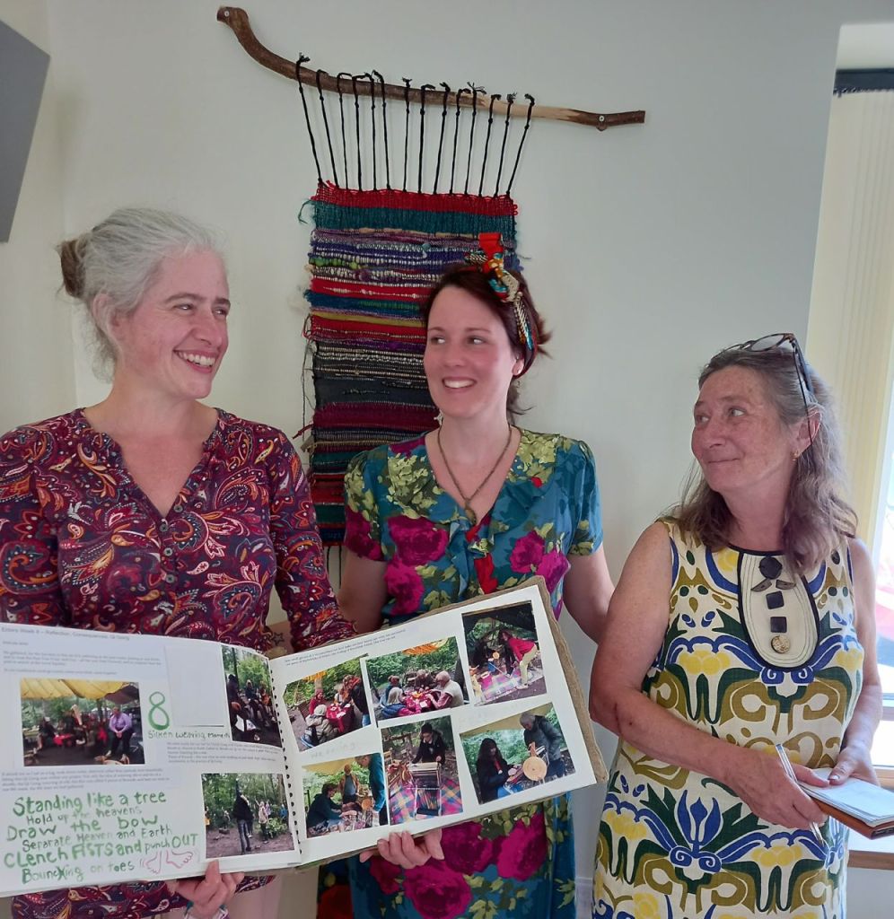 All the Elders came to the Pear Tree – for some the first time. Naturally tea and scones and jam were offered. Kevin introduced them to the space. Shona, Rachel and Kally said a few words. Naomi led us in our last Tai Chi in the atrium space. Finally Chris unveiled the tapestry.