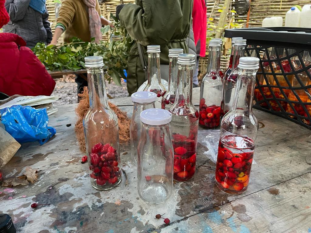 After gathering hips and haws from the field, we finished our hedgerow vodka – well its making. Next week labels.