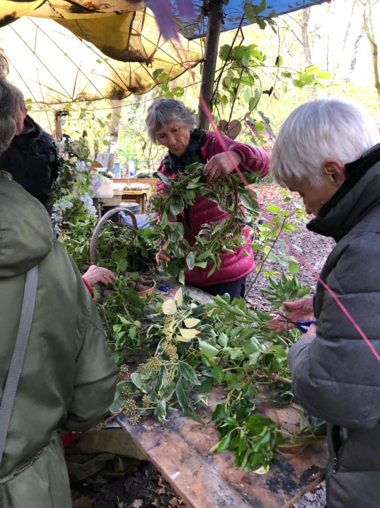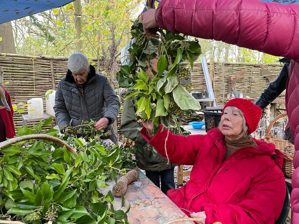 Virginia taught us how to bend willow to form the centre of the wreath, and in it we wove ivy and it’s sci fi atom like umbels (the flowers, and critical late pollen for insects).