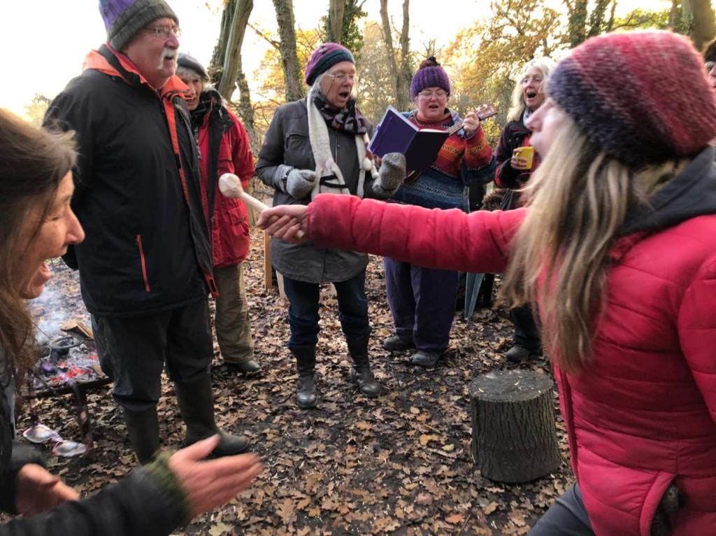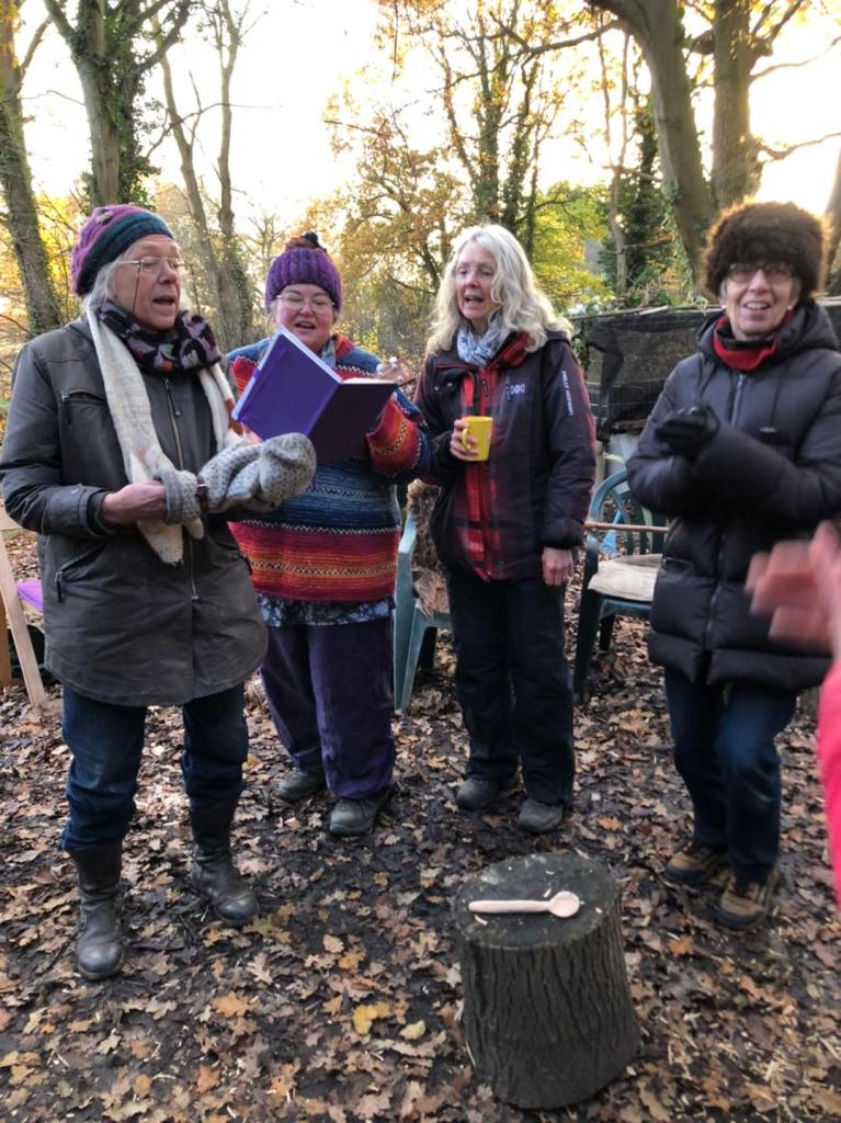 Finally we all got up to move around , keep warm, and SING. ‘This is the only electric spoon I’ve ever known;, observed Andrew of Jo’s dynamic microphone technique.