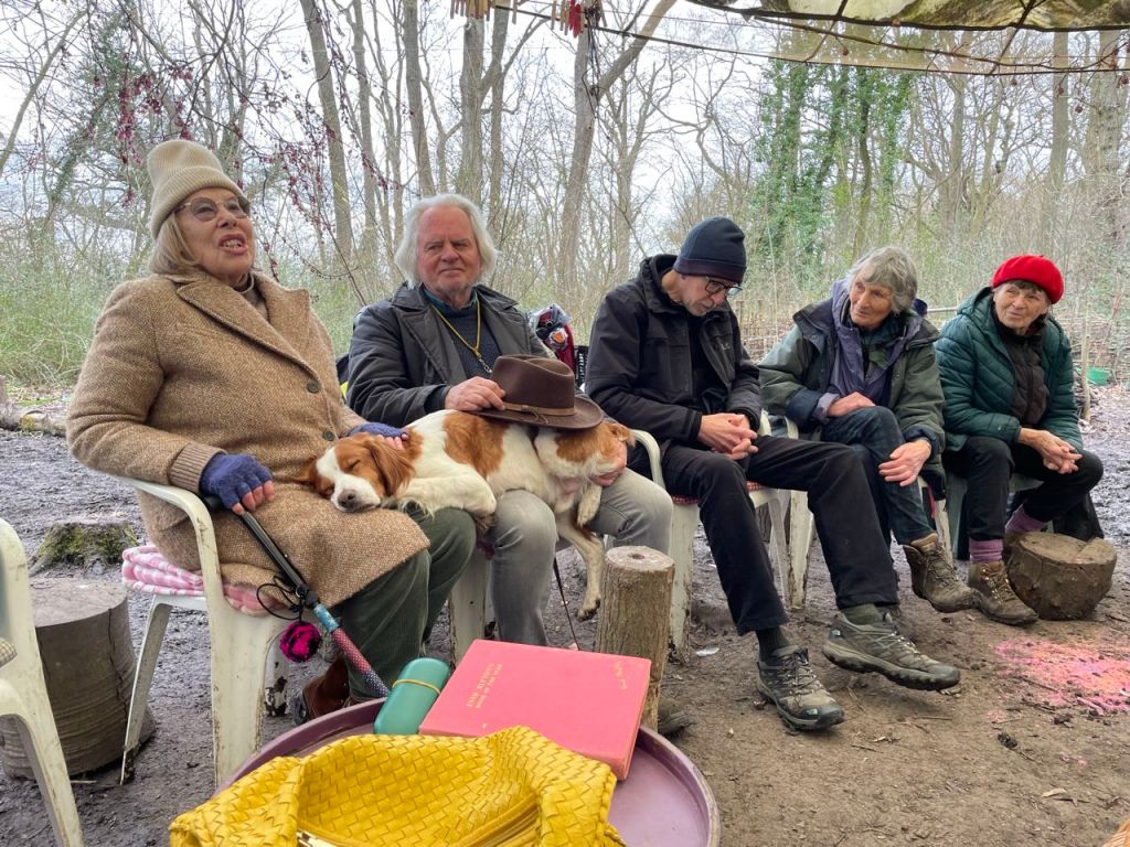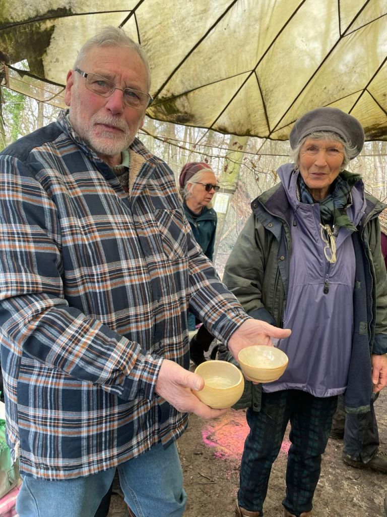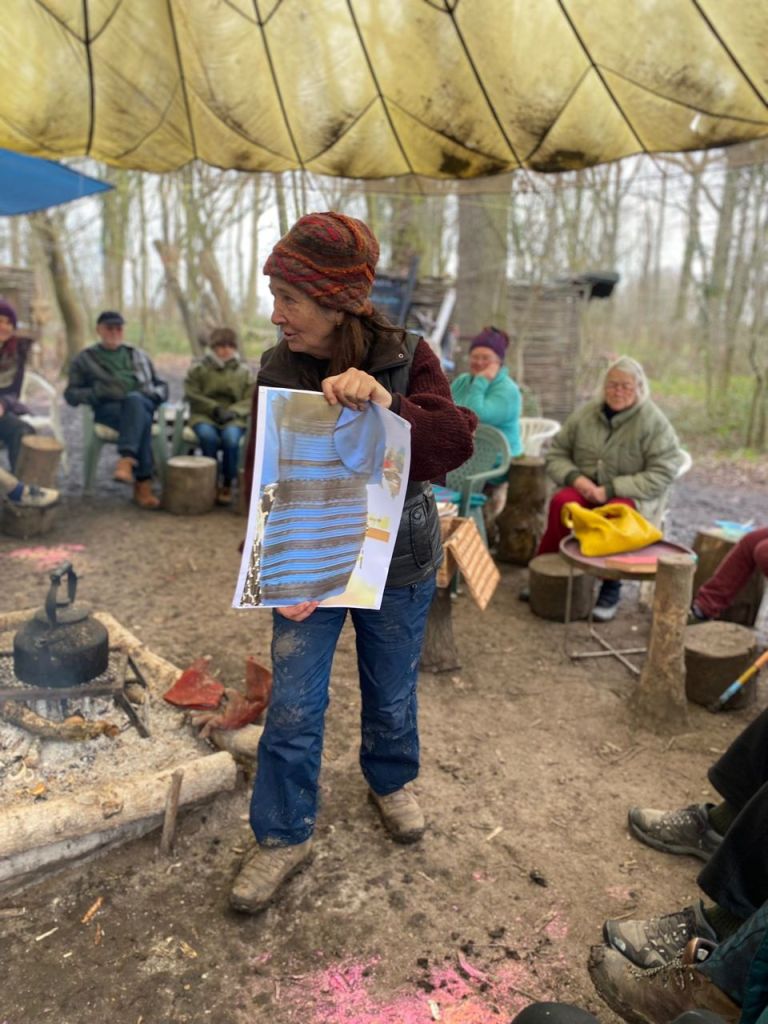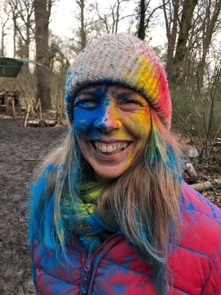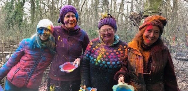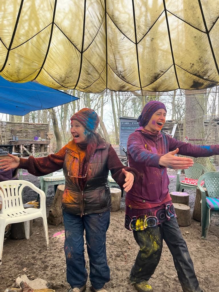 Then, after scones and tea, we ventured to India, to the feast of Holi, a festival of spring, here in the wood a display of throwing colour was manifested by Kally, Jo, Nicky and Rachel. A high to leave the woods on.