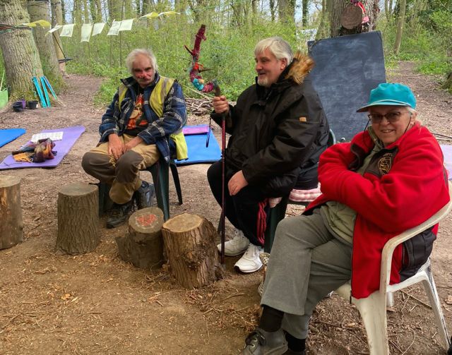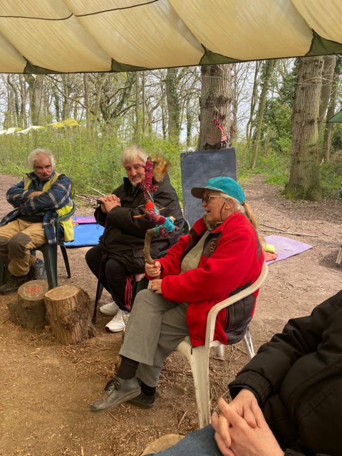 First (after lentil soup and calling the directions) we attempted to remember our journey so far: from Seeing, through hearing, smelling and touching. Chris recalled the great humus in the tasting, and where once he thought he did not like, he now makes it to Jills recipe. Touching the hornbeam. Pippa’s talk on the importance of hearing. Picking primroses and eating them. Feeling lambswool. Reading the blog. Seeing Peters radiating smile when we were playing instruments. Seeing Jill and Armoral blindfolded with the Covid facemasks.