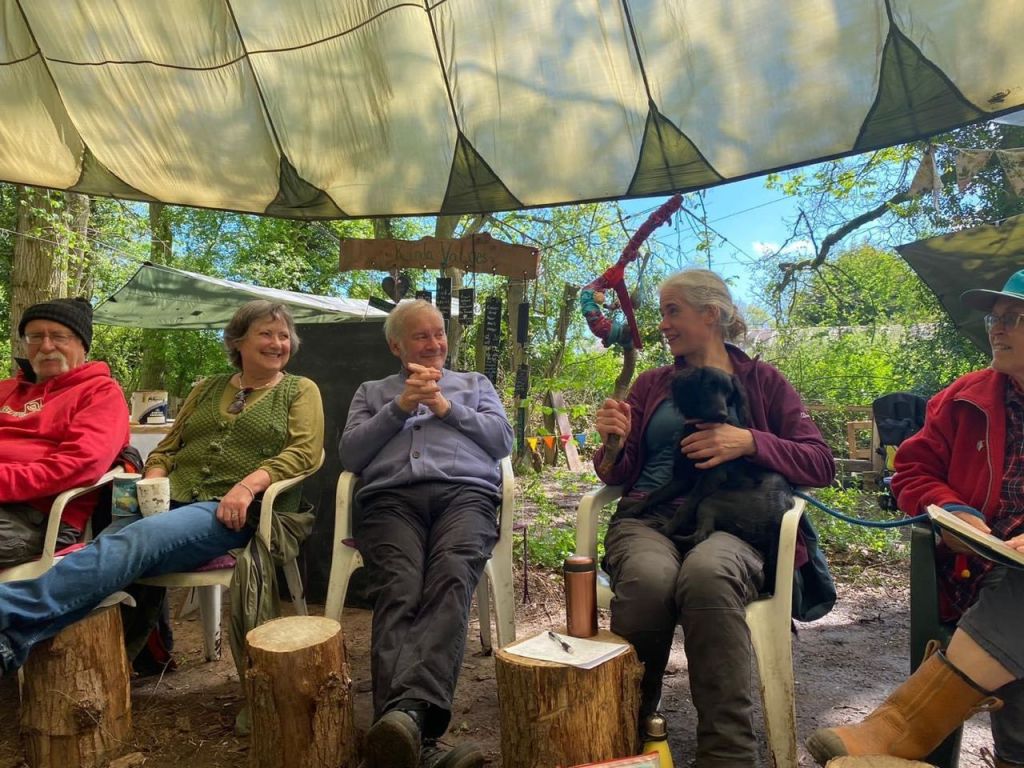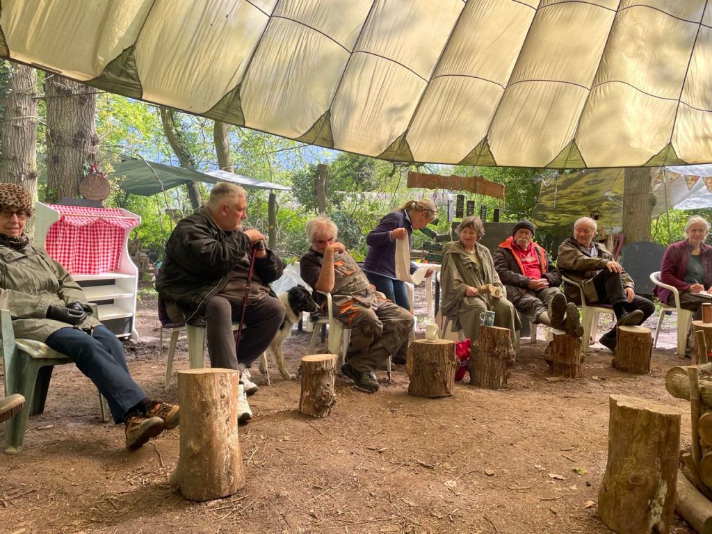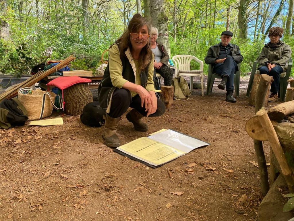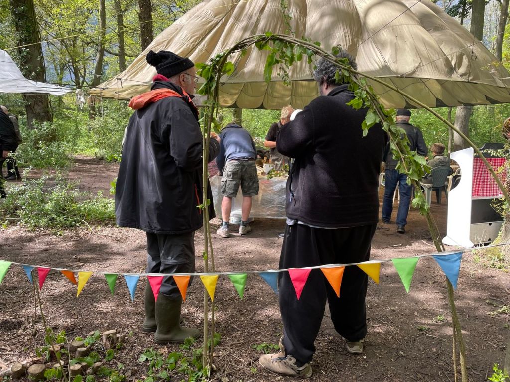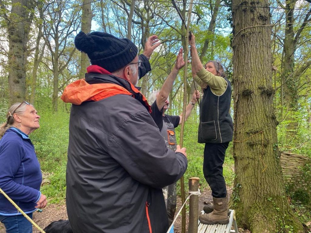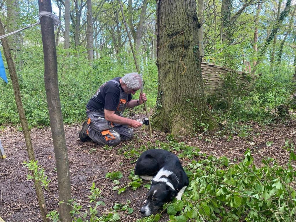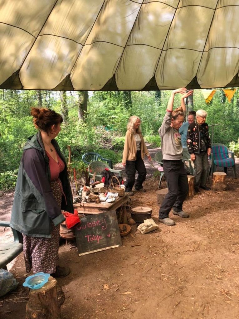 We wandered around the wood to see the manifestation of hazel, now coppiced, between the oaks. Ending at the great hazel bender that some of us made last year, where we marveled at it’s structure and saw how it was growing.