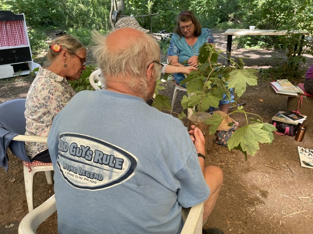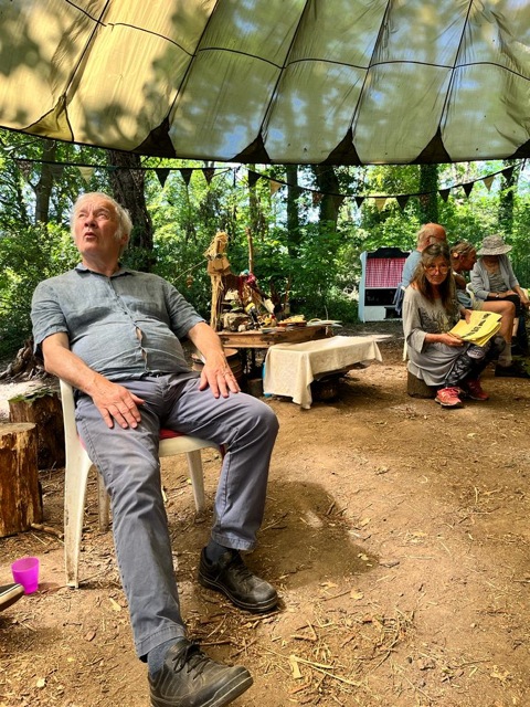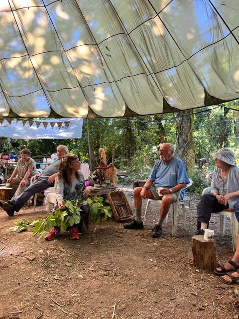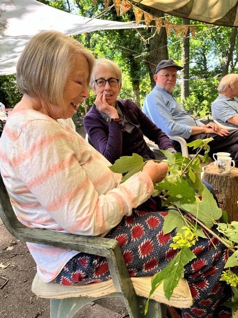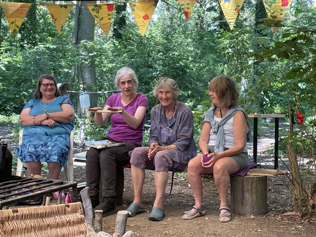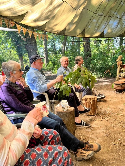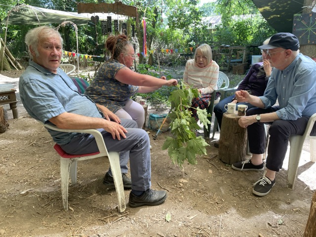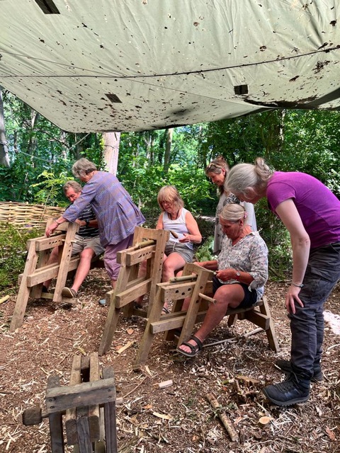 After all that brain work, we needed to be practical, and most of us got a turn on the shave horse, shaving freshly cut sycamore (thank you Peter and Chris). There is very little sycamore in the wood, and the one we had we cut!
