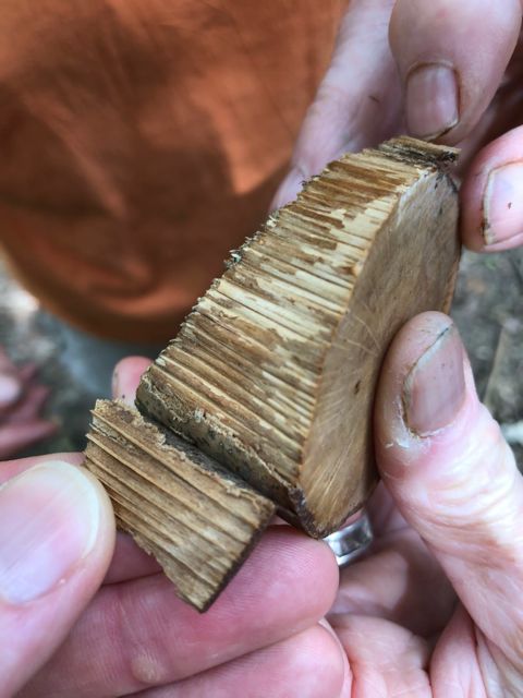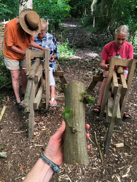 Back at the fire we felt the hardness of the hornbeam by trying to cut it, and some attempted a whittle.