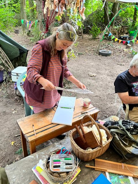 Rachel & the woodland weavers team planned ideas for an Earth loom with Anita who brought her Navaho loom expertise to share with us and advice and ideas for a new installation in Kali wood! Watch this space!