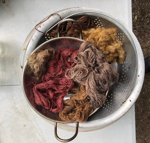 Kally and the natural dyeing team made wonderous woodland chemistry with natural dyes of all conceivable origins, and we sunk yarn and cloth into them to see what colours would emerge over the coming week…