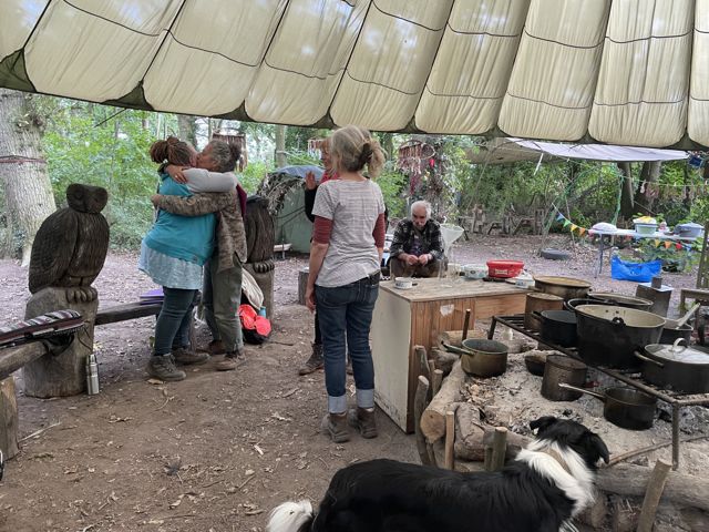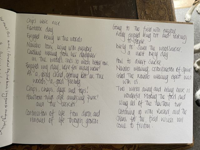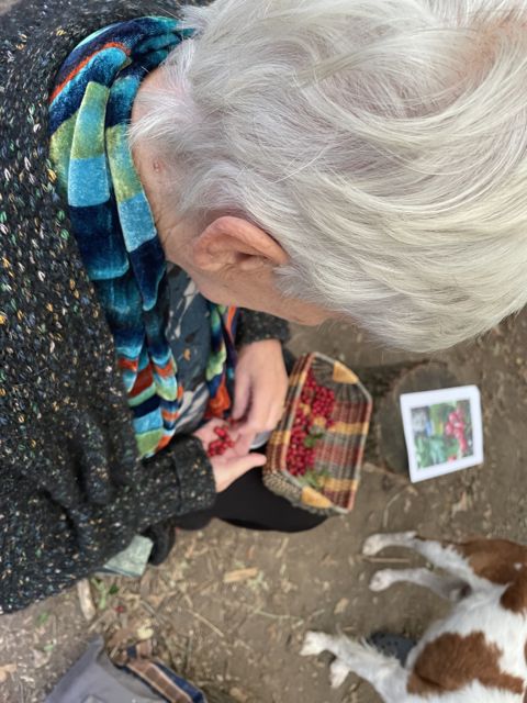 We gathered once again under the trees in Kaliwood with Haws and the Hawthorn tree our inspiration for the day. We missed some folk but others returned after illness & trips abroad, a mix of the vintage and new Elder’s and welcome, fortuitous guests!