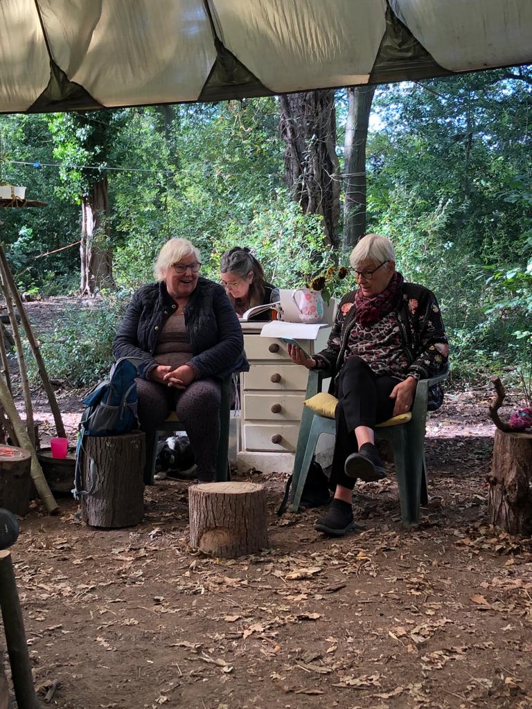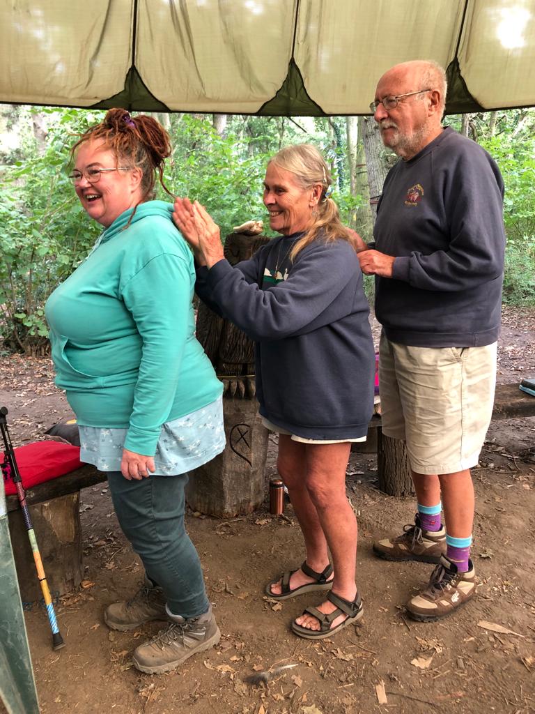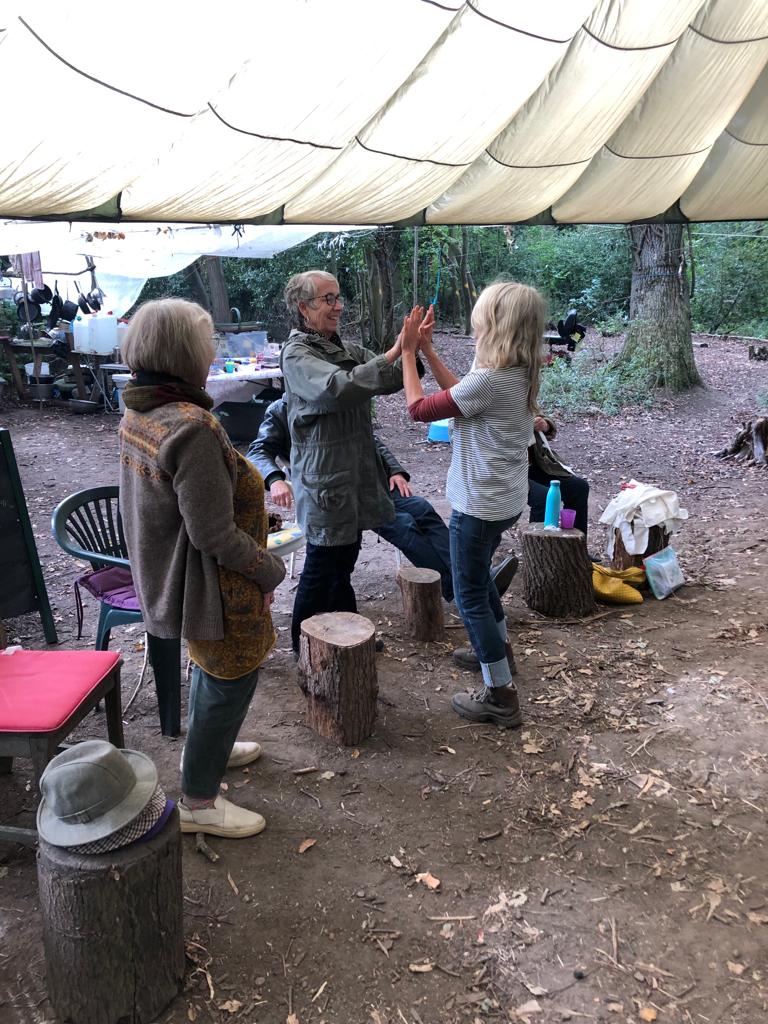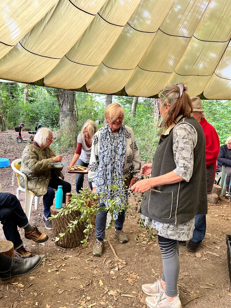 Meanwhile, Chris and Roy (welcome back) stripped the bark off a hazel to prepare for making a loom in the wood.