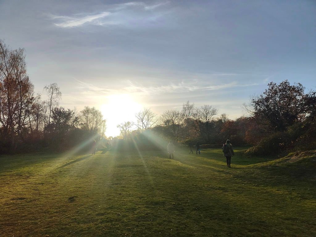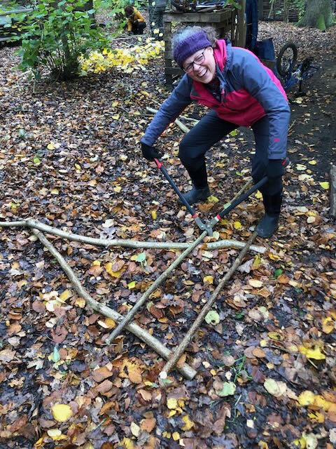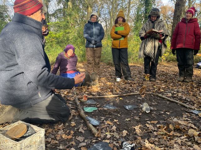 Worlingham woods, a huge 30 acre area once belonging to Worlingham Hall before the Beccles bypass divided the land. (Modernisation truncating old land). Down Marsh Lane, past the site of stone age re-enactment scenes, into the woods, and turn left at the 600+ old chestnut tree to find our fire hearth, the centre of our learning for the 2 golden autumnal days, before rain lashed on Friday and forced us into the cabin.