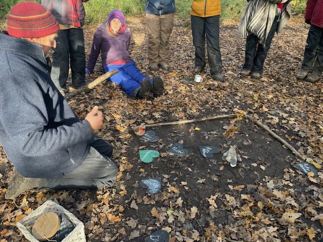 After 3 days of Reframing Behaviour training under sweet chestnut and lime, Jon came to the oak nuttery of Kaliwoods for a further two days with the Kinda facilitators tribe.
