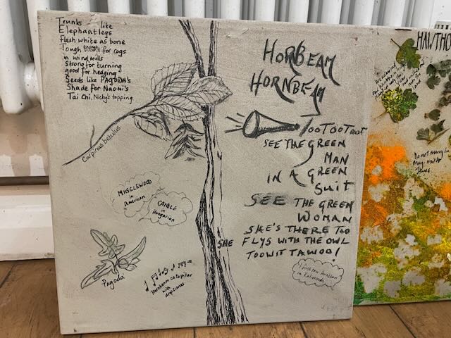 We began our last day of 2023 with a shared a feast in the wood. Hot chai, Apple cake, egg sandwhiches, Home made sausage rolls, a choice of mince pies, beautiful long gluten free crackers, many cheeses, including nicky’s quince cheese potato salad, home made humous and carrot sticks, Carrot cake, chocolate cake, olives galore, marvellous muffins, mackerel squares. Ivy enjoyed a cream cheese mustachio.
