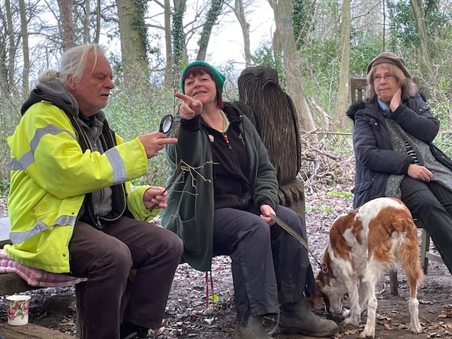 With a stethascope some went to the hornbeam to see if they could hear the sap rising, however the noise of a distant chain dominated.