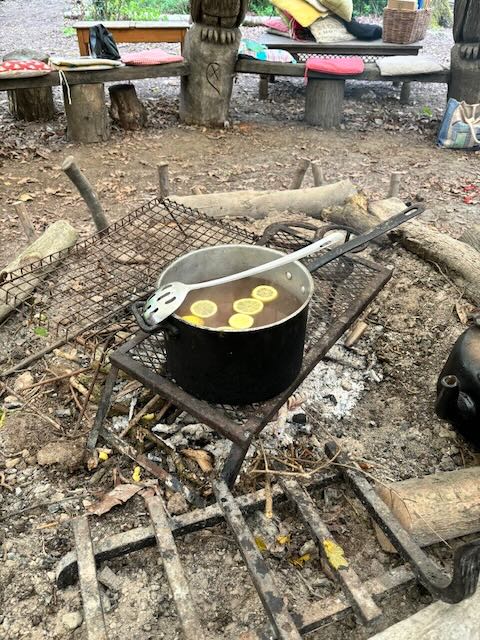 heating on the fire to dissolve sugar, added lemons and a ceremonial adding of 3