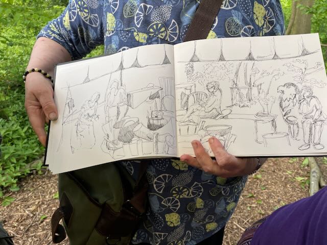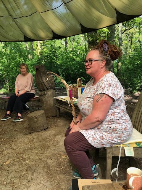 After a glorious silence, listening to all the sounds around, mainly clear as water bird song, Nicky introduced us to our theme, with a rabbit created talking stick. She reminded us of that children’s classic, Watership Down by Richard Adams, published in 1972. Some could not bare to watch the film knowing the sadness of the ending (Fiver). Some of us had forgotten the plot.