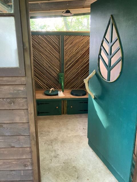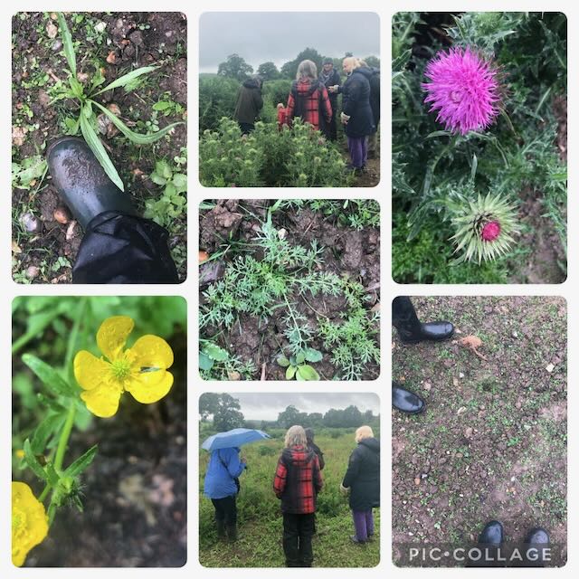 After delicious soup made by Leslie and heated on the virgin fire, we felt the need to move. Our first meander was to CLIVE, the stunningly beautiful creation by MJ, our downstairs toilet – as it happens next door to the WW2 mens urinals, inspected by Roy and 6 women. Returning by the tree nursery we had a quick tree quiz, Leslie came out top.