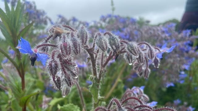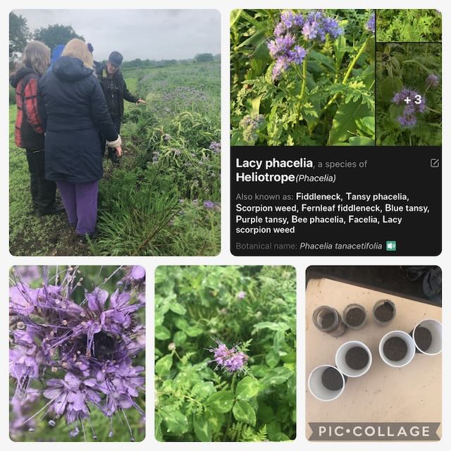 We ventured out to the land, inspected the pond, walked down the north ride to the circle, then the south ride to the footpath, until we came up close to the flowering phycellia, buzing with bees. We saw why they were called Fiddlenecks.