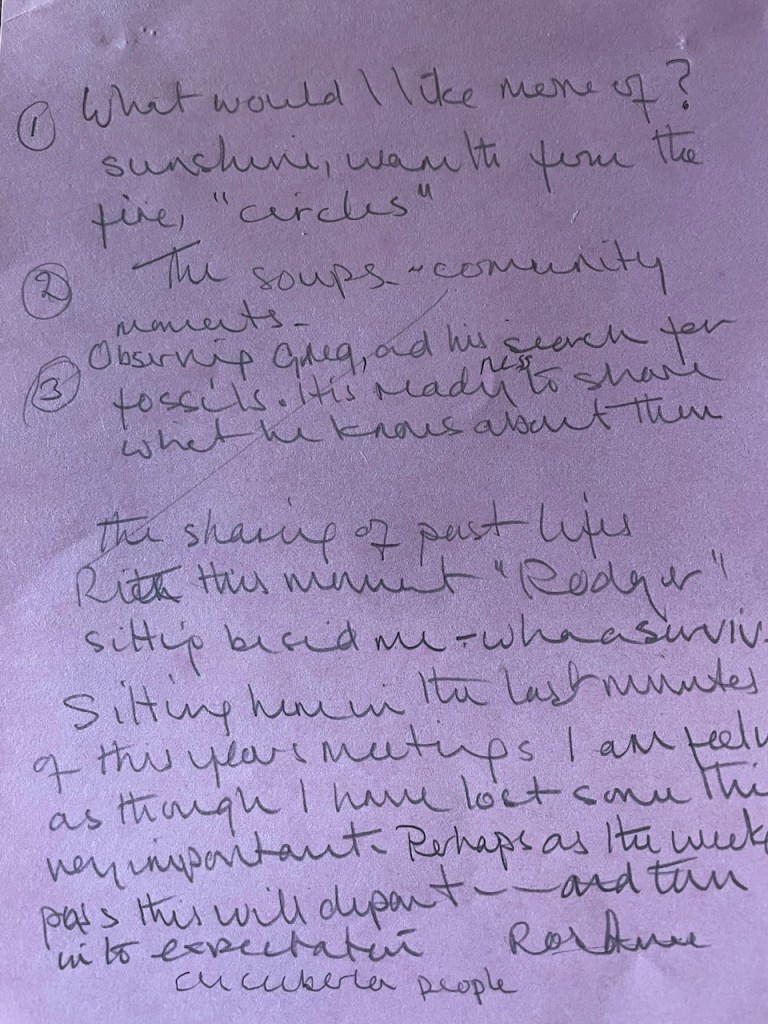 G joined us this year. He first attended the Home Ed Tribe in Kaliwoods, and began tentatively exploring the flora and fauna, experiementing with foraging and natural remedies. He bought in a metal detector and began discovering the past history of the land, this led to an exciting development…fossils! With the pond dug and dried out this year, it exposed a fresh layer of ancient seabed, full of discoveries. Greg is now an expert in palaeontology. It is inspiring to see the change in confidence and his sense of belonging when he is immersed in the landscape. He feels safe with Elders to shows his finds, and Elders in turn bought in their fossils for him to name and talk about. For G we invited Howard Mottram, retired Suffolk County Council archeologist, to inspect G’s collection and talk to us about fossils on the land, and we had a day of going back in time millions of years