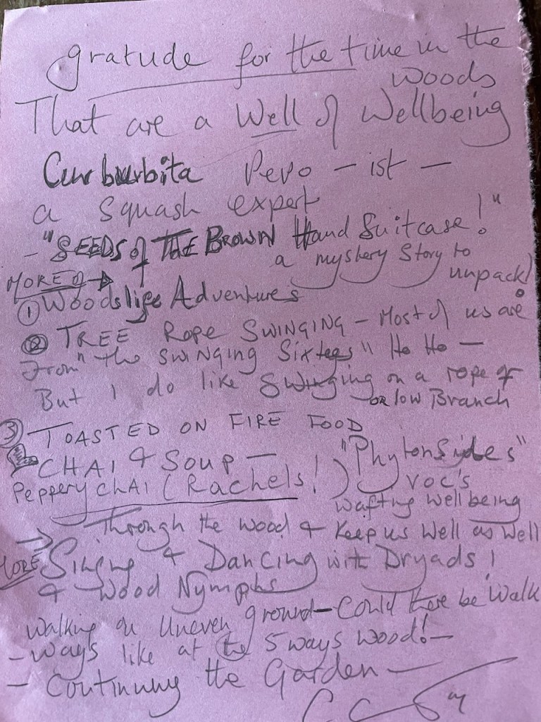 Based on 5 years of forest school for Elders in the woods, and now well embedded in