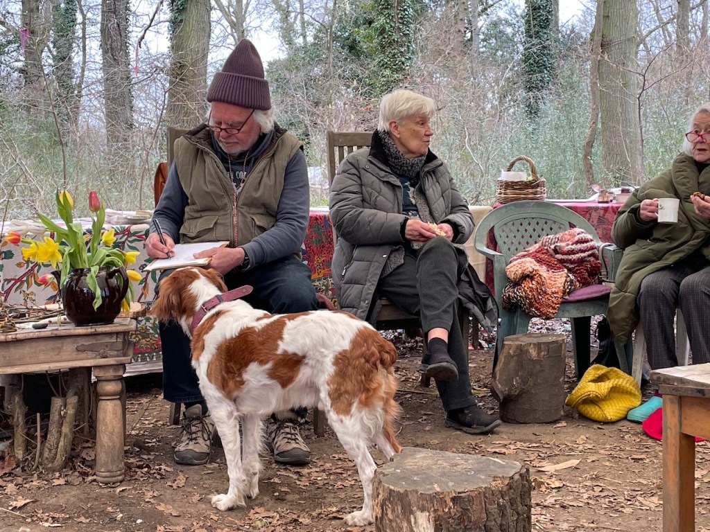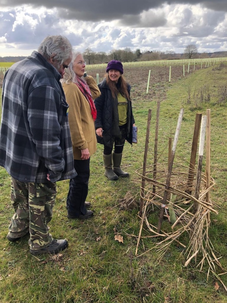 Lines in a landscape, now symetrically planted but will become as random as this 100 year old wood in which we sit.