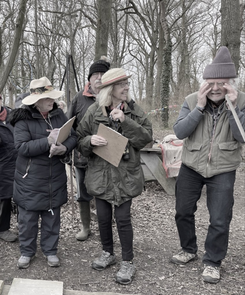 Below we are preparing to go on to the land to start our weekly scientific investigation. So how do frogs spawn? Is it just one frog? How long does it take to hatch? What are the predators and eaters of frogs-spawn? Prof Beanland and Storey gathered many questions.