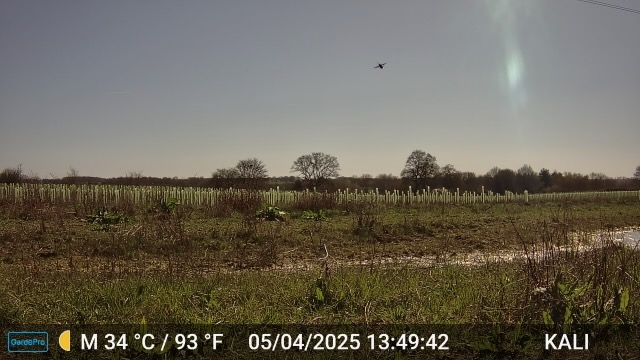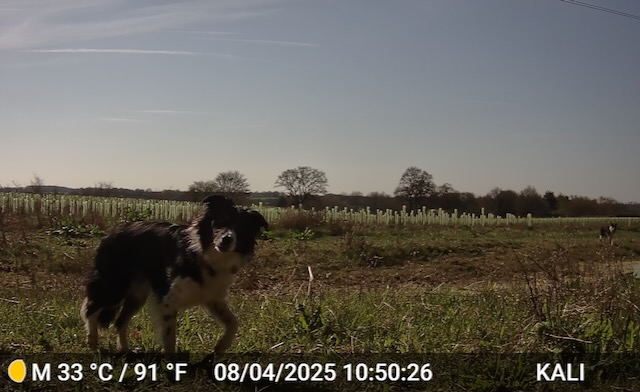 A wild insect, photogenic dog, visitors (Linda, Cindy, Bill) caught on camera, and AT LAST, wildlife, at night, Chinese deer, and muntjac, and perhaps a drone – who was looking at our land???