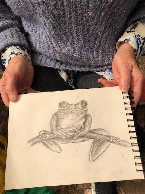 The second part of our home work was to draw a frog, then hiding that away, from memory draw that frog! Amazing exercise. As someone said, there are no frogs in drawing books – they are not cuddly enough.
