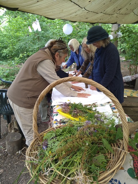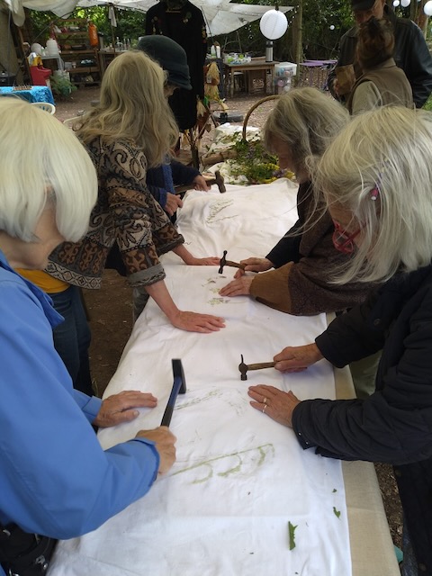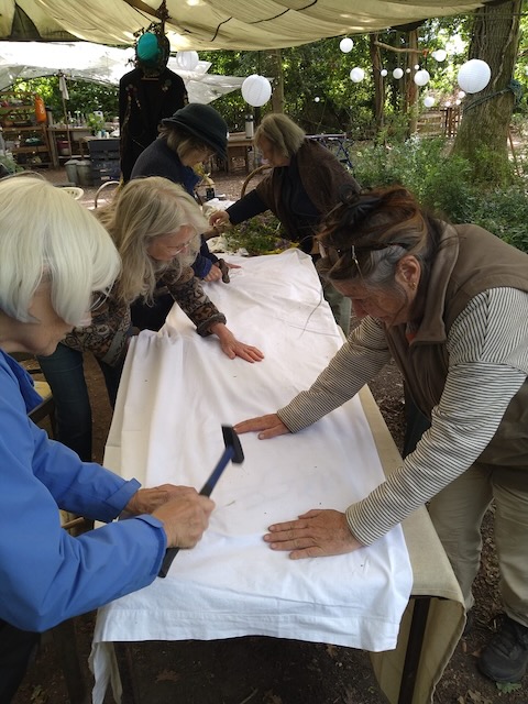 Finally a sheet from the last century was produced and we arrange our grasses, flowers leaves, and bashed away.