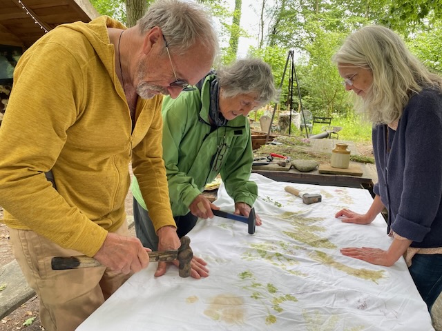 Our sheet, with Hugh and Virginia giving it a good bash