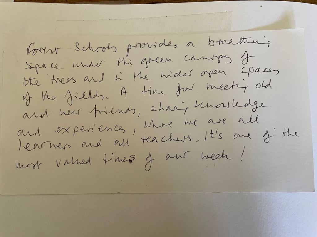 - Forest school has given G time to be able to be him…. Kind, greenery, relaxing and much more than my school life.