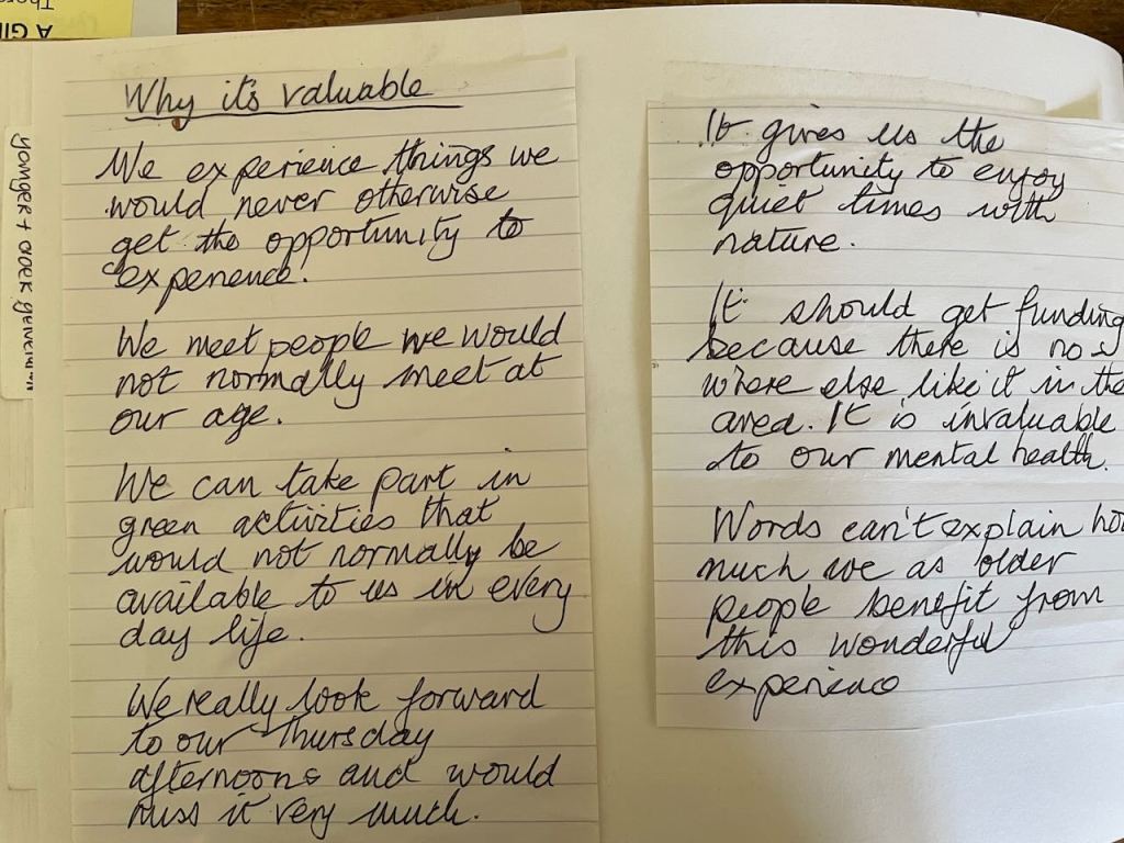 - To sit in the wood! I love trees, and have been upset by all the trees cut down at sizewell. So I focus on this place which is like an oasis. I feel totally refreshed when I come here. Like an escape with friends, my favourite thing to do, hoping to see everyone again in the autumn.