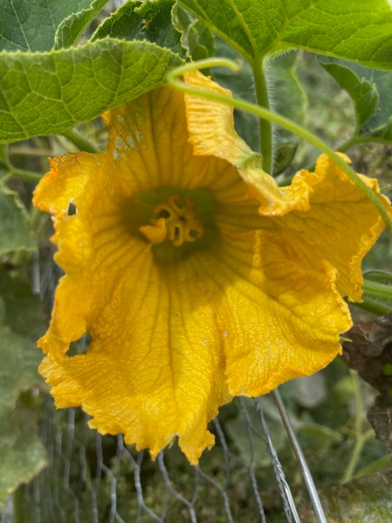 harvesting more beautiful squash and gathered flowers along the way to press back