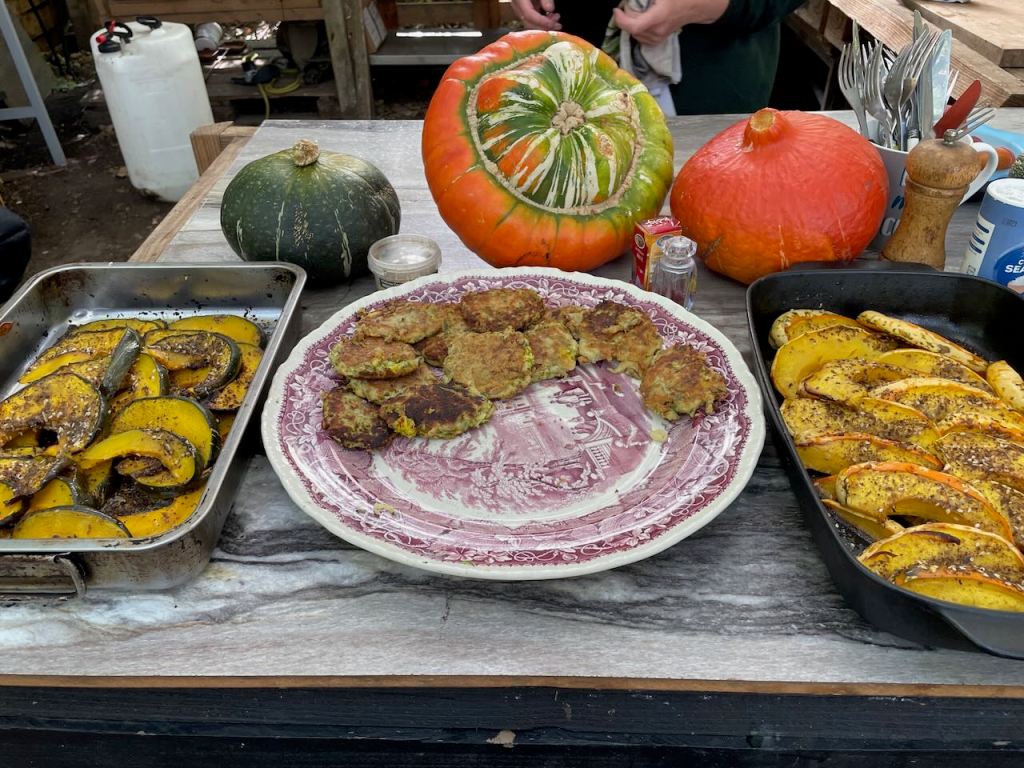 Squash and courgette fritters, grown in the community garden. We were inspired by