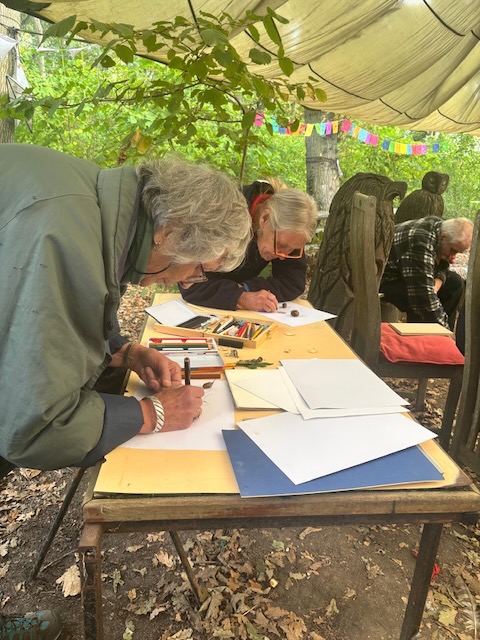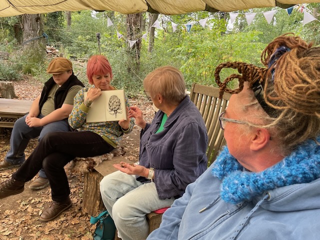 It was national poetry day, as Caroline and Nicky reminded us. So we combined this with our home work, words beginning with ART, inspired by an artichoke or a drawing of an artichoke, which was done by Gill – see below.