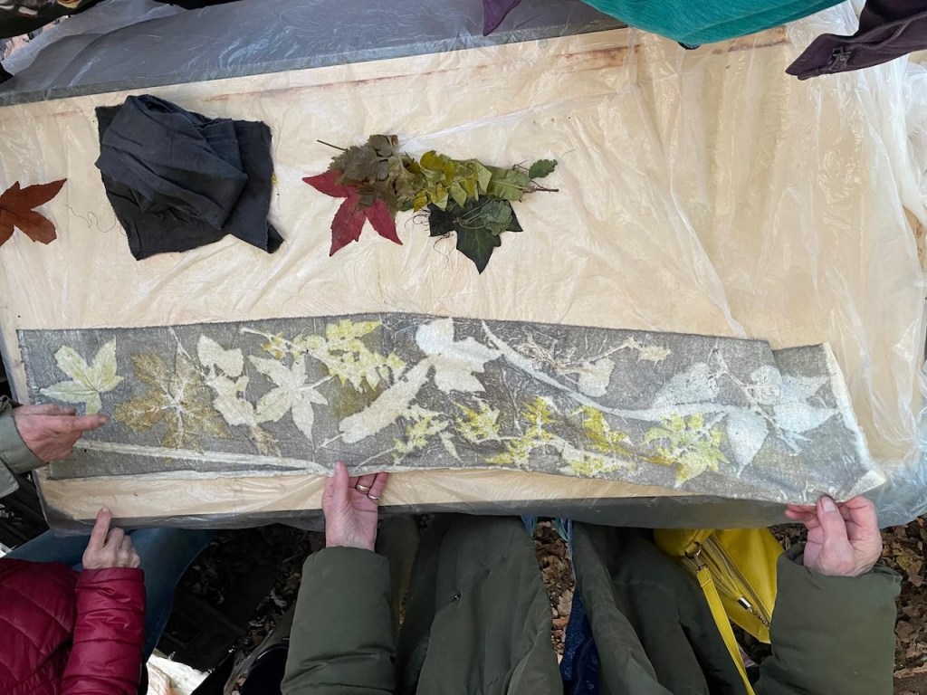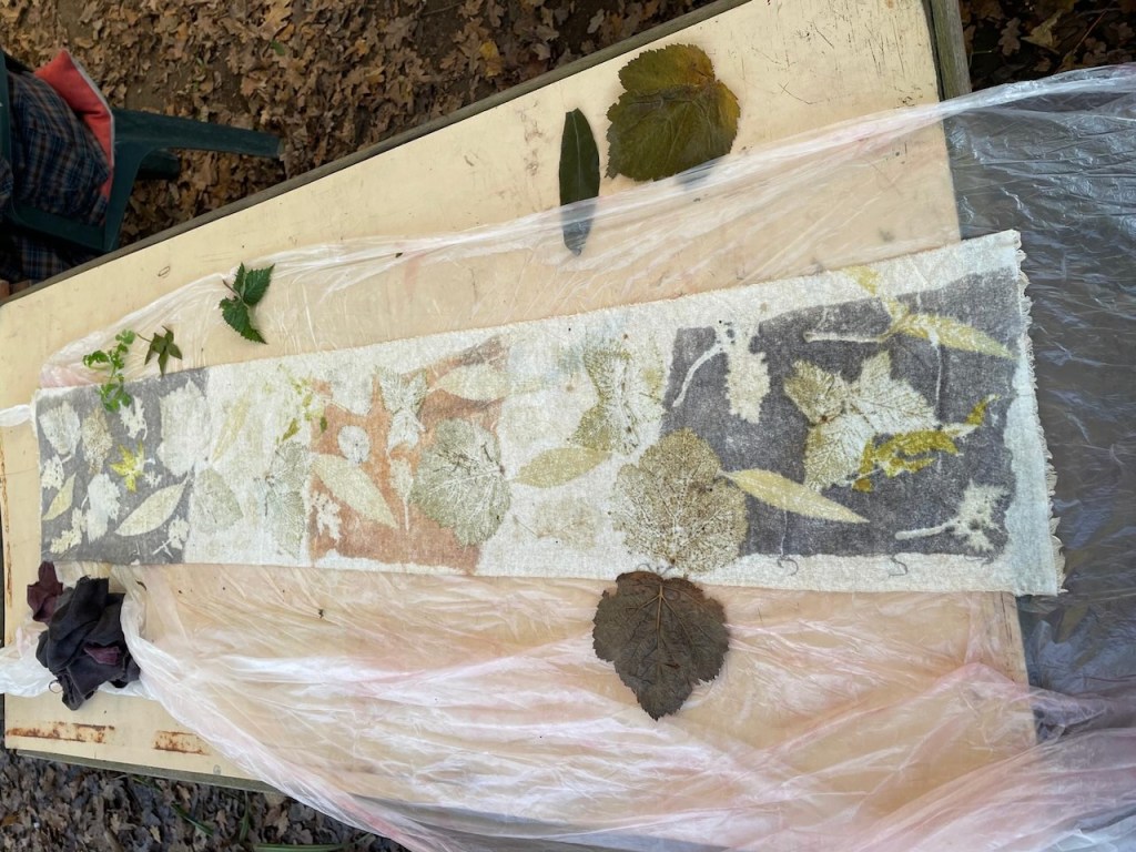 Our last session this year, we crammed in Eco-printing for those who had not had a chance, and many of us took back home some beautiful scarfs, imprinted with leaves.