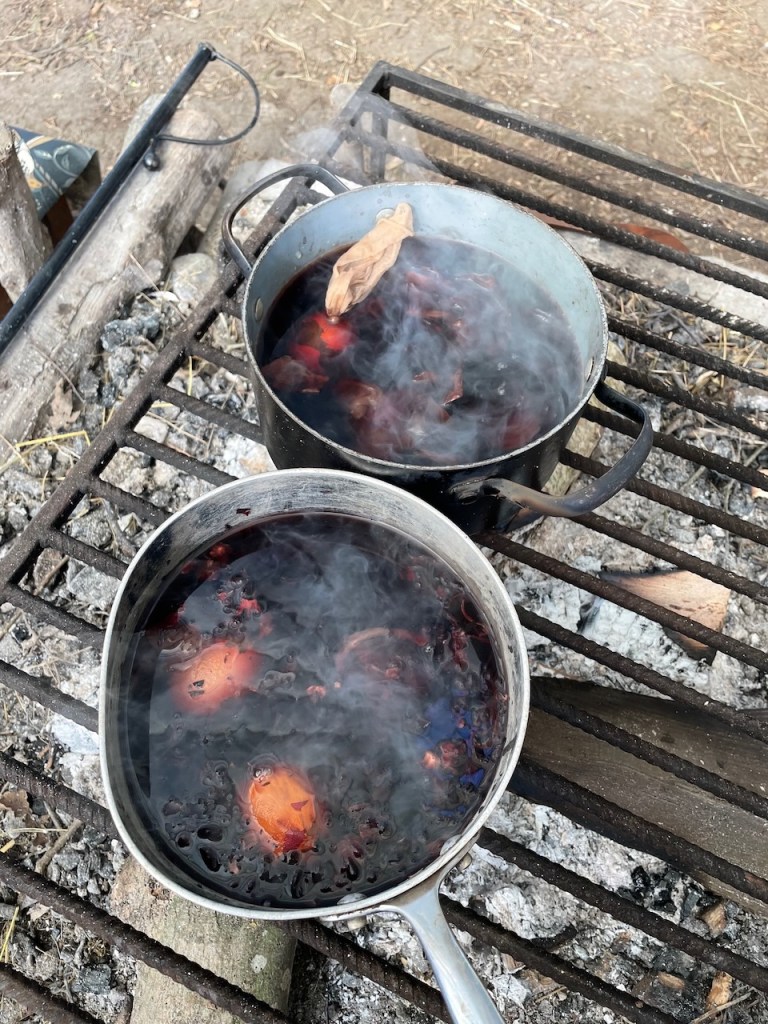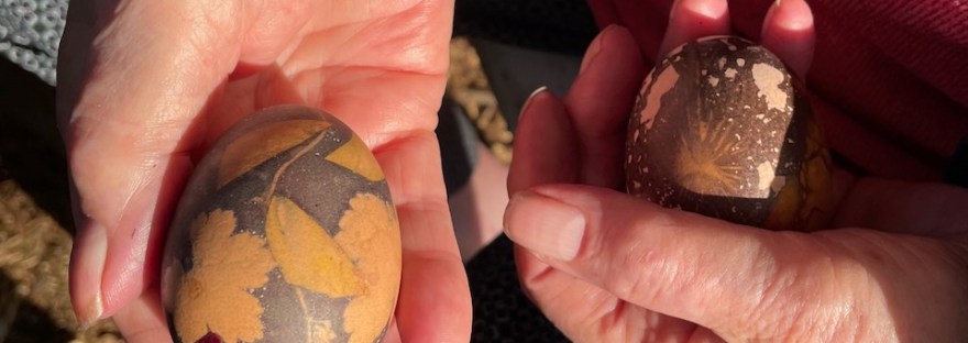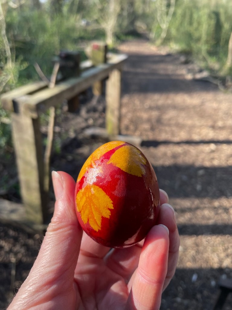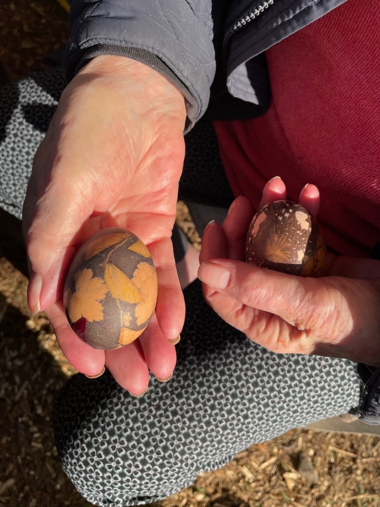 Some of us decorated eggs with hibiscus and onion skin dye.