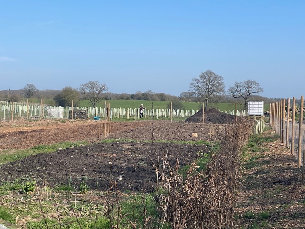 Some of us explored the land, peering down the Black Poplar tubes but missing a tape measure to compare with exactly this date last year when we first measured. Next week when Peter returns, we will do it. Impressed with the mulch on the community garden.