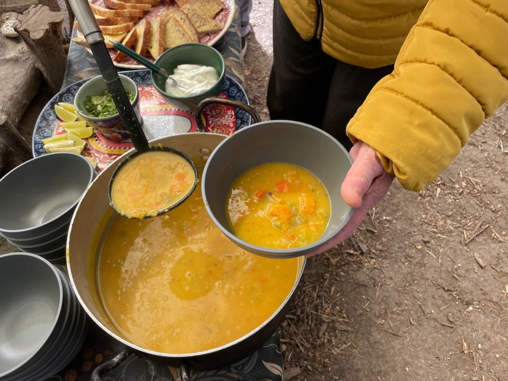 It was cold, so we got up and moved, and rubbed each others backs (yum) before we invited Andrew to give his prepared talk. Later he observed in the closing circle. Never prepare a talk for Kinda Forest School!