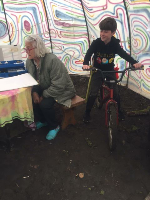 Eventually I opened the canvas awning, treated it, and we put it over the form. It was christened ‘Bathbomb’ by one the Monday tribe, relayed by Shona, who saw it’s fitting quality. It was used by children and Elders alike, as a crafting space out of the wind.