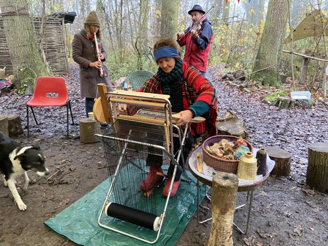 Music played, with Pete Vicky and Marion. Conversations began, weaving wove.