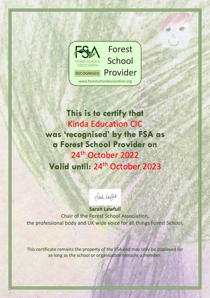 Rumi at Darsham / Registered Kinda Education as an Qualification Centre with the awarding body ITC First which enables us to deliver Forest School and other qualifications